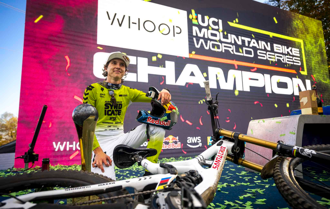 Le titre revient ainsi à Goldstone (Santa Cruz Syndicate) qui signe sans aucun doute la saison rêvée pour tout descendeur : cinq victoires, un titre mondial et la Coupe du Monde. Et ce, deux ans seulement après qu’il ait quitté la catégorie junior (à noter qu’il n’avait pas couru l’année dernière en raison d’une blessure au genou).