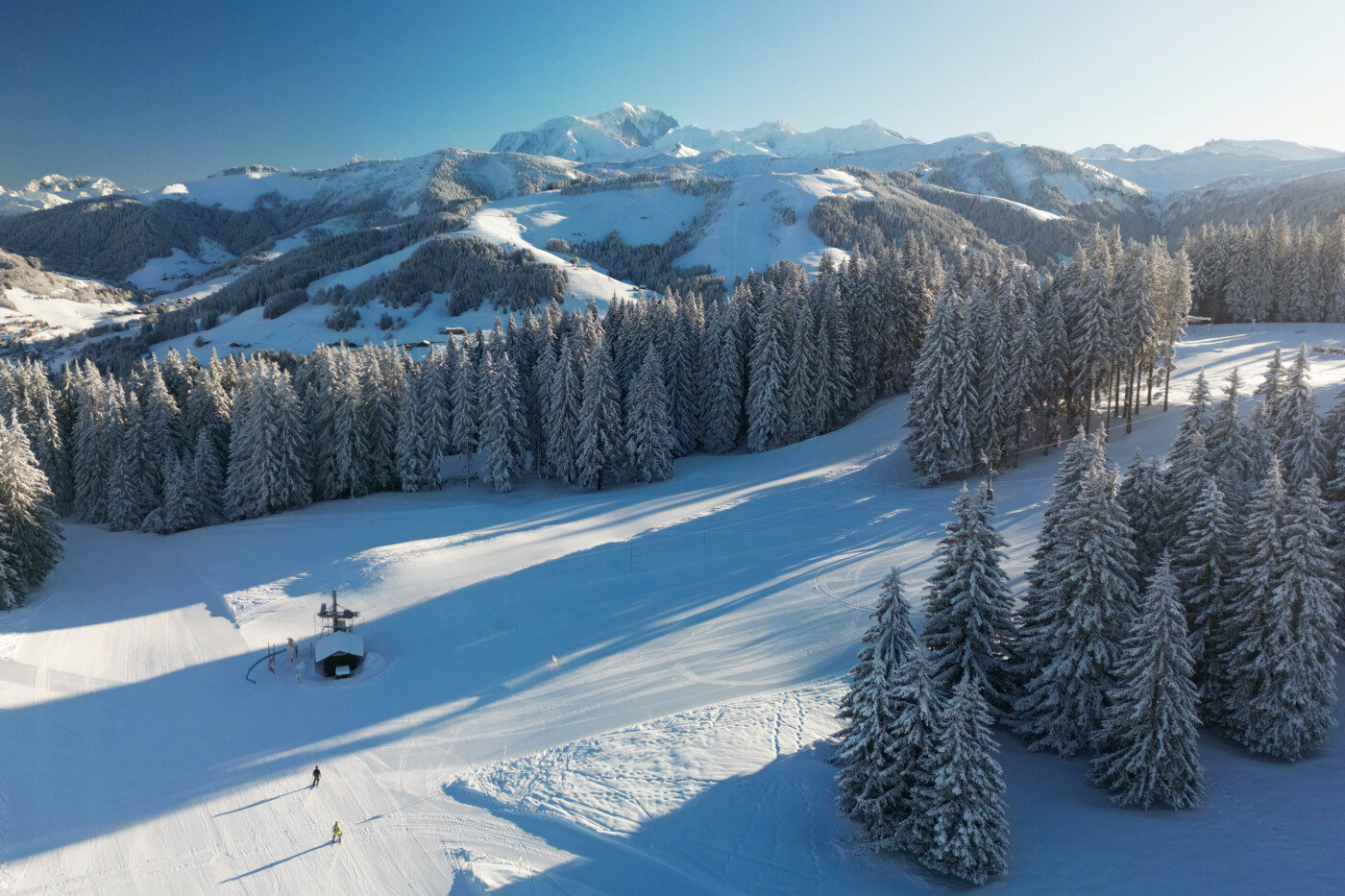 Entre Aravis et Beaufortain, Crest-Voland Cohennoz est une porte d’entrée privilégiée vers l’Espace Diamant et ses 192 kilomètres de pistes. Mais avant d’aller chercher les grands dénivelés, on se régale déjà sur ses 34 km du domaine local, parfaitement tracés pour alterner glisse plaisir et apprentissage. Ici, on skie entre sapins, alpages et vues panoramiques : le Mont Charvin, la chaîne des Aravis et le Mont-Blanc s’invitent dans le champ de vision à chaque virage, signature unique pour un domaine aussi joueur que convivial.