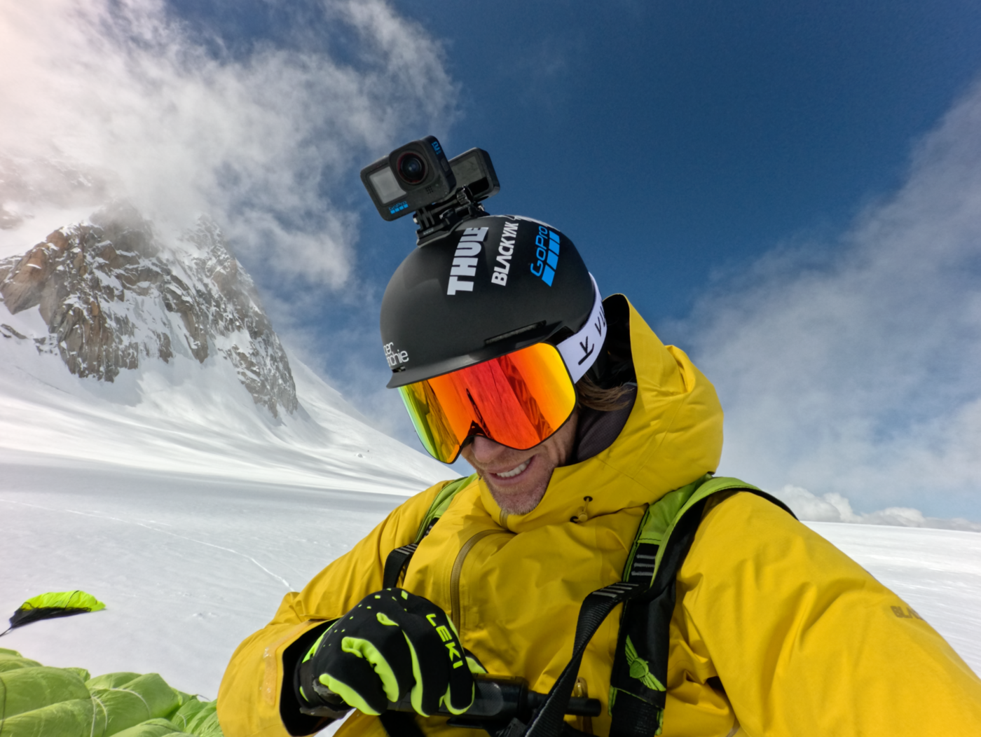 Retour à la Pointe d’Areu, puis au sommet du Mont-Blanc, il signe un exploit inédit : le premier ski base jump depuis le toit de l’Europe, établissant ainsi un record du monde. « Un saut d’acceptation de mes actions et de mon rôle de père », confie-t-il.