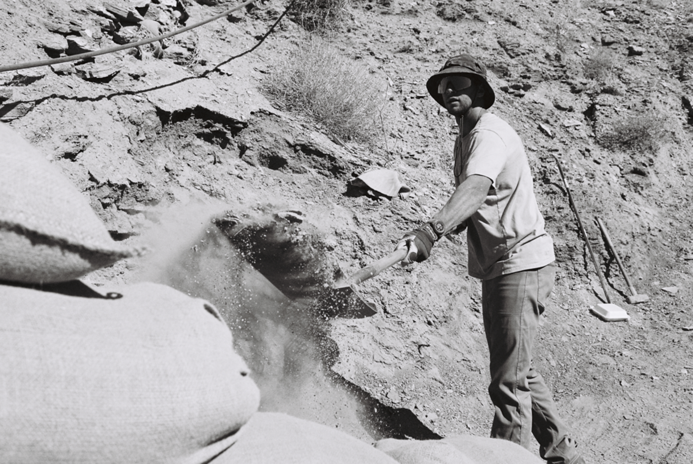 La journée commence très tôt, généralement vers les 6h pour être sur place à 7h30. Ensuite on monte à pied et on se met directement au travail. On prévoit déjà la veille ce sur quoi on va avancer. On a une petite pause à midi et dès le début d’aprem on repart creuser jusqu’à 19h30. C’est le même programme pendant 8 jours.
