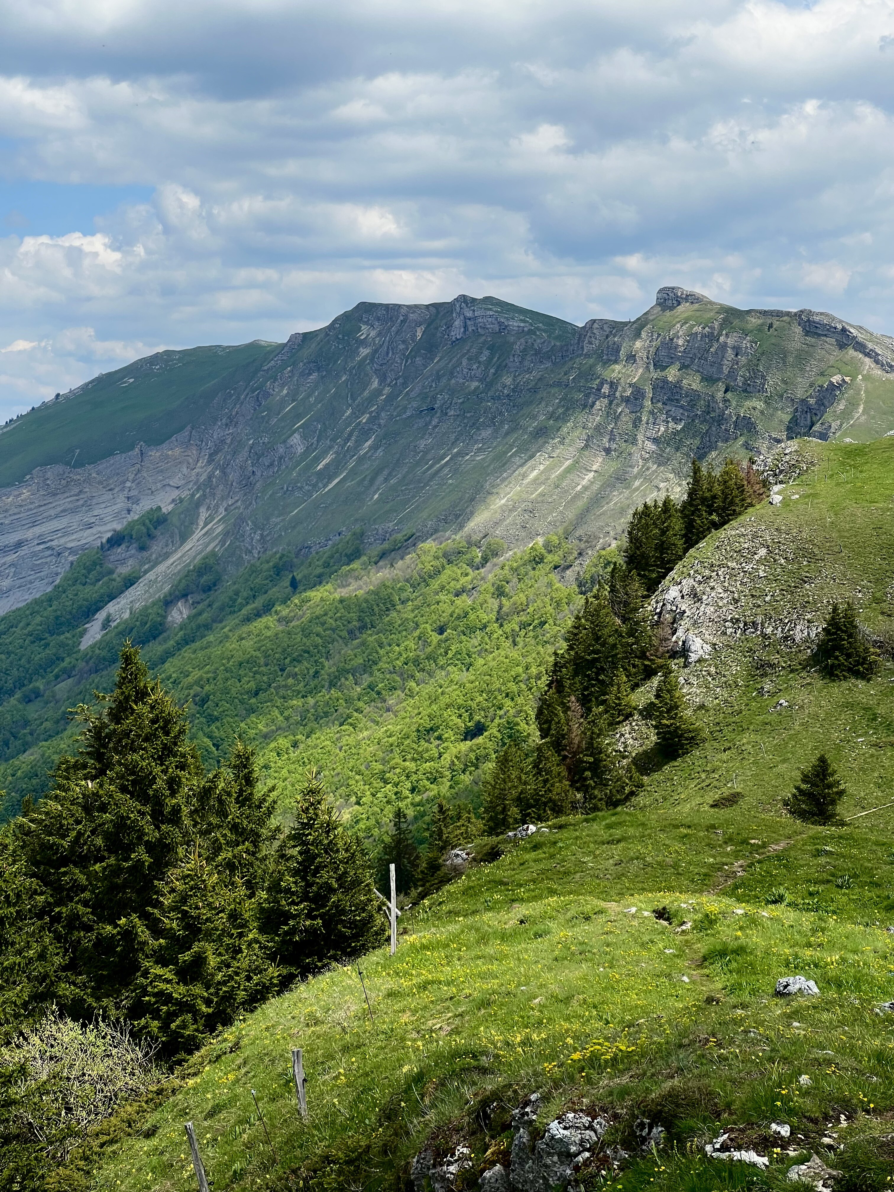 Depuis la gare de Bellegarde, le sentier file vers le château de Mussel et le hameau d’Ochiaz avant de gagner le Plateau de Retord. Panorama ouvert sur le Jura et les Alpes, puis progression jusqu’à la Charnay. Nuit possible à la Ferme de Retord ou au refuge de la Conay.