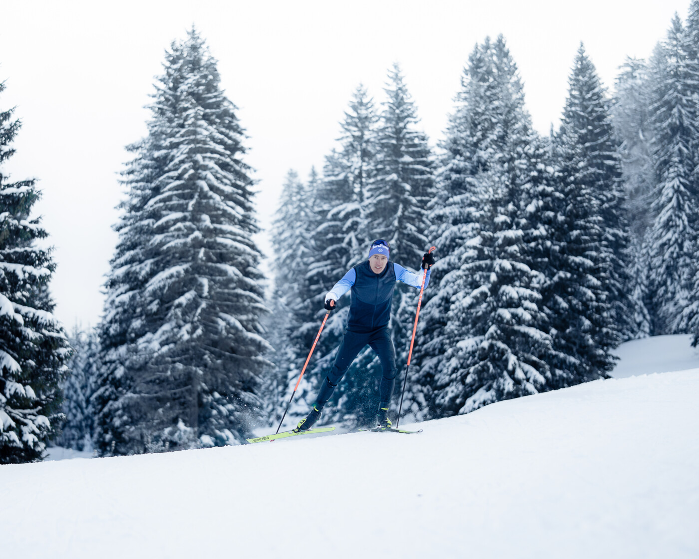 Le froid vif du Haut-Jura s’imprime durablement chez celles et ceux qui y grandissent. Il impose une adaptation permanente et forge une rigueur à l’image du climat de Prémanon, là où Quentin s’entraîne. Les skis glissent entre sapins, épicéas et hêtres, au cœur d’un silence presque absolu. Les pistes de la forêt du Massacre lui inculquent sérénité et endurance, deux qualités essentielles à la performance.