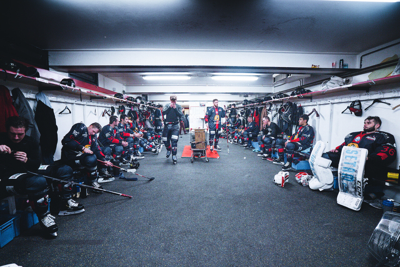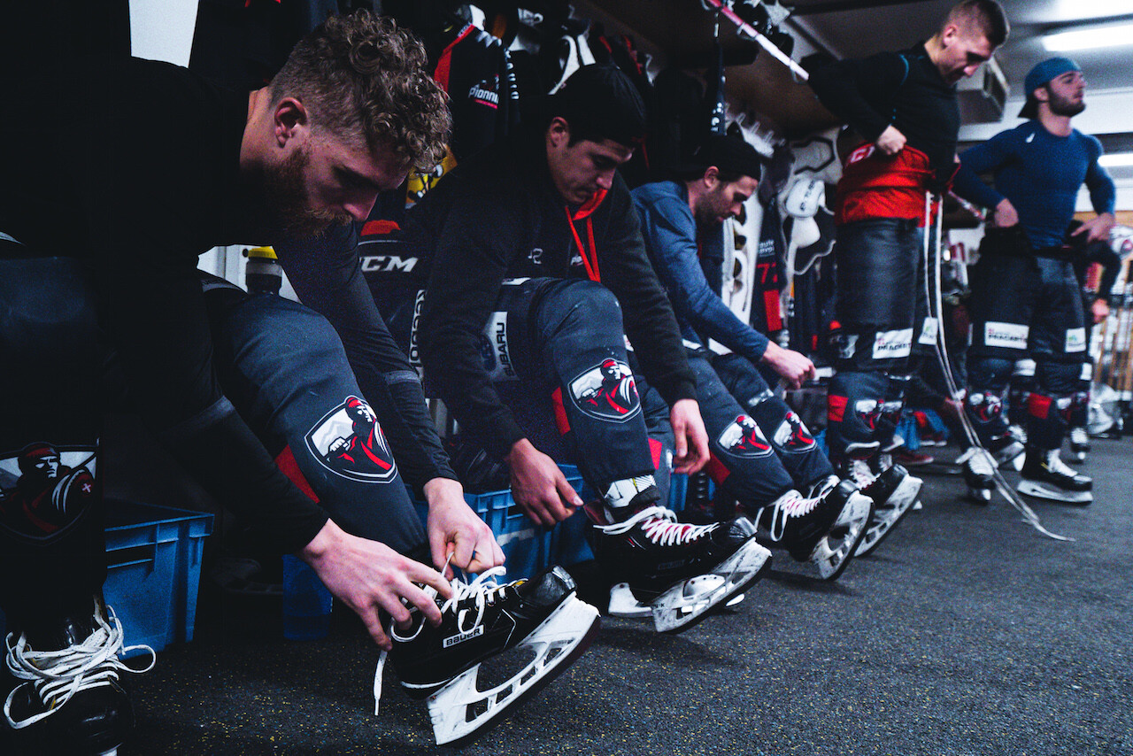 Petit à petit, la pression monte, au fur et à mesure que le temps s’écoule et que le coup d’envoi se rapproche. C’est l’heure de la causerie. Cet instant précis où le coach insuffle à ses troupes, tel un général, motivation et détermination. Silence de plomb. Le discours est travaillé et l’approche théâtrale. Au tableau, plusieurs mots inscrits sur des feuilles. « Le talent. C’est utile, mais ça ne suffit pas ! » commente Heikki Leime en prenant le premier papier pour le jeter à la poubelle. « La tactique. C’est indispensable, mais ça n’est pas suffisant ! » avant que le feuillet rejoigne lui-aussi les oubliettes. Ne reste alors qu’un seul mot : « Le sacrifice. Le sacrifice les gars, c’est la clé de tout ! Si vous jouez les uns pour les autres, rien ne peut vous arriver ! » Il est 19h15, l’heure de l’échauffement sur la glace. Et autant vous dire que les Pionniers s’y avancent d’un coup de patin vigoureux.