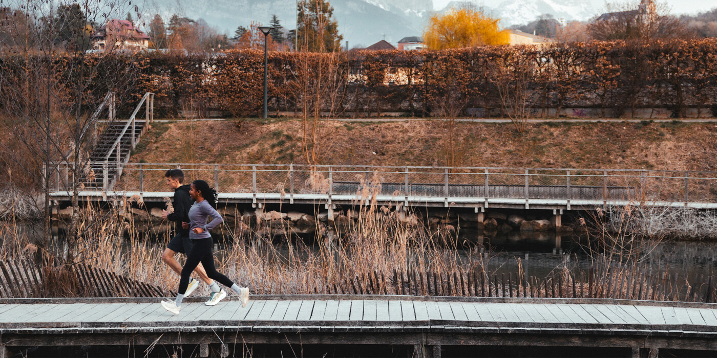 Vincent m’a tout de même appris le ski - une discipline qui ne figurait pas vraiment au programme scolaire en Californie du Sud, comme tu t’en doutes [rire]. Je pratique à petite dose, mais j’ai désormais mes skis de fond et mes skis de randonnée, et il nous arrive d’en faire ensemble de temps en temps. C’est aussi ce que permet la beauté de l’hiver en France. Et puis c’est la vie que j’ai choisie en épousant un Annécien [rire]. Mais pour être honnête, quand les beaux jours reviennent, mon plus grand plaisir reste d’enfiler mes baskets et d’aller courir.